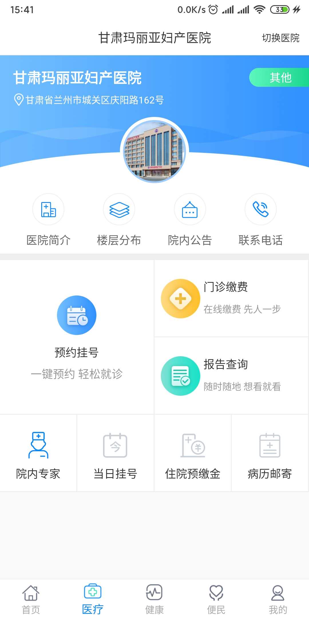 目前,我院在健康甘肃APP开通:预约挂号、院内专家等功能。用户只需注册登录健康甘肃,搜索“甘肃玛丽亚妇产医院”点击进入,选择相应的科室、医生,进行预约挂号,预约成功后,系统会将就诊信息和医院地址下发到用户的手机,用户凭此到院就诊,无需排队。