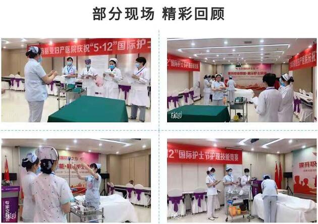 本次竞赛共设四组,分别为第一组由产科护士、助产师、门诊围产医助参加的胎心监护、心电监护、无菌技术比赛项目;第二组由妇科护士、门诊妇科医助参加的静脉输液、头孢皮试液的配制、无菌技术比赛项目;第三组由门诊治疗室、输液室、 采血室护士、预检分诊护士参加的单人心肺复苏、静脉输液、无菌技术比赛项目;第四组由手术室护士参加的无菌技术、手术器械摆台、穿脱手术衣、戴手套比赛项目。
