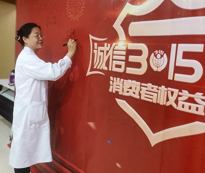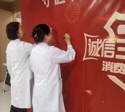 宣誓完毕后,所有医护人员在“3.15”活动背景墙上郑重的签上了自己的名字,这是他们对患者签下的诚信保证书,也是玛丽亚的医务工作者汇聚诚信正能量,传扬社会新风尚最好的见证。